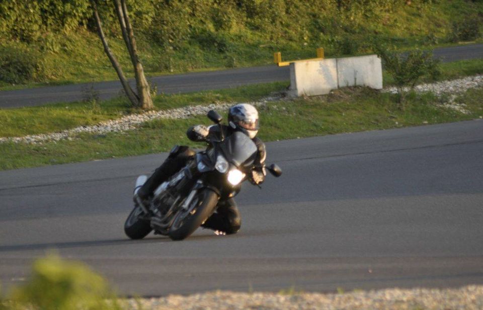 Bei unseren „Trick mit dem Knie”-Motorrad Trainings stehen die Sicherheit einer sportlichen Fahrweise im Vordergrund. Hier üben wir u.a. den Kurvenstil „Hanging off”.