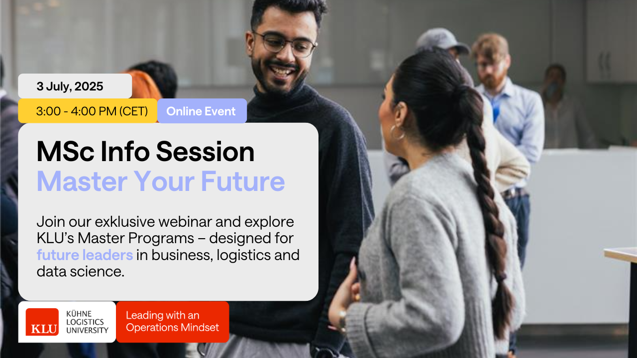 Kühne Logistics University (KLU) invites you to an exciting webinar introducing our three Master Programs designed to shape the leaders of tomorrow.