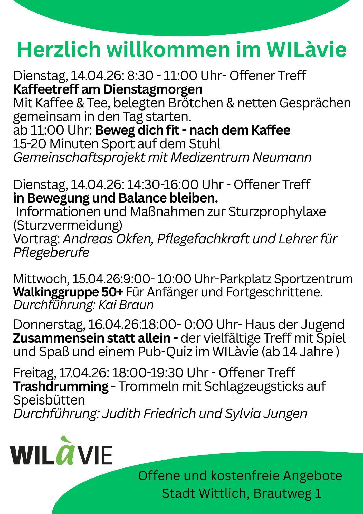 Donnerstag, 16.04.2026, 18.-00.00 Uhr - "Haus der Jugend" - Zusammensein statt allein - der vielfältige Treff mit Spiel und Spaß und einem Pub-Quiz im WILàvie (ab 14 Jahre).