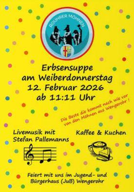 Genießen Sie - bei Livemusik mit Stefan Pallemanns - das alljährliche Erbsensuppenessen im Jugend- und Bürgerhaus Wengerohr.