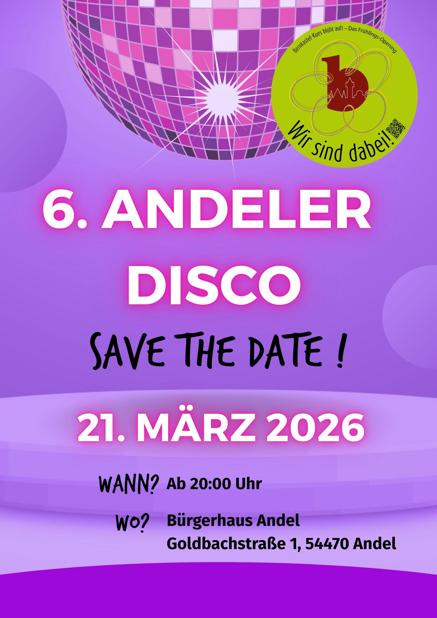 Die Andeler Disco hat sich in den vergangenen Jahren zu einem beliebten Treffpunkt für Einheimische und Gäste entwickelt und ist mittlerweile ein fester Bestandteil im Veranstaltungsprogramm von Andel. Besucher dürfen sich auf einen geselligen Abend und ausgelassene Partystimmung freuen. Der Eintritt ist frei