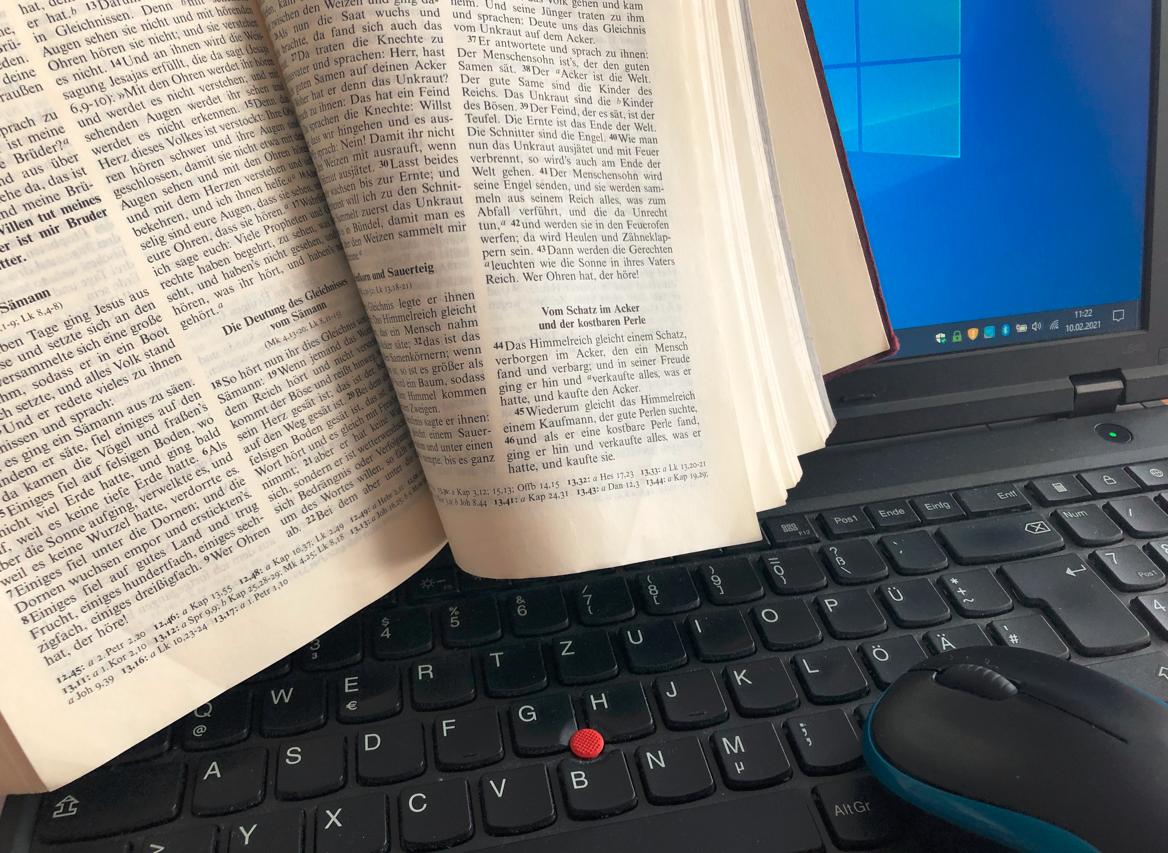 Was geschieht, wenn ich mich auf einen alten Text einlassen? Was nehme ich in den Worten und zwischen den Zeilen wahr? Welche Reaktionen und Fragen entstehen in mir? Mit anderen Menschen im Austausch ergibt sich die Gelegenheit, Neues zu entdecken.An jedem letzten Mittwoch im Monat treffen wir uns in offener Runde von 19-20.15 Uhr per Video (über Zoom) zur Begegnung mit einem Bibeltext.Wir beginnen mit kurzer Meditation und Stille, hören und lesen einen Text aus der Bibel, lauschen auf die Resonanz, die er in uns auslöst, auf Gefühle, Gedanken, Fragen, teilen einander mit, was uns durch Kopf und Herz geht, und bringen es vor Gott. Manchmal entsteht dabei ein Impuls für den Alltag.Es sind keine Vorerfahrungen nötig, einfach dabei sein, teilnehmen und -geben, so wie es zu einem passt.Wer dabei sein möchte, schickt eine Mail zur Anmeldung an jordan.spiritualitaet@kirche-slfl.de und bekommt dann am Tag vorher den Zugangslink mitgeteilt. Die Teilnahme an einzelnen Abenden ist genauso möglich wie an mehreren oder allen.Was ist für die Teilnahme nötig? Ein Computer oder Laptop, ein Tablet oder Smartphone mit ausreichender Internetverbindung und Mikrophon, möglichst mit Kamera. Ab 18.50 Uhr ist der Zoom-Raum jeweils geöffnet.