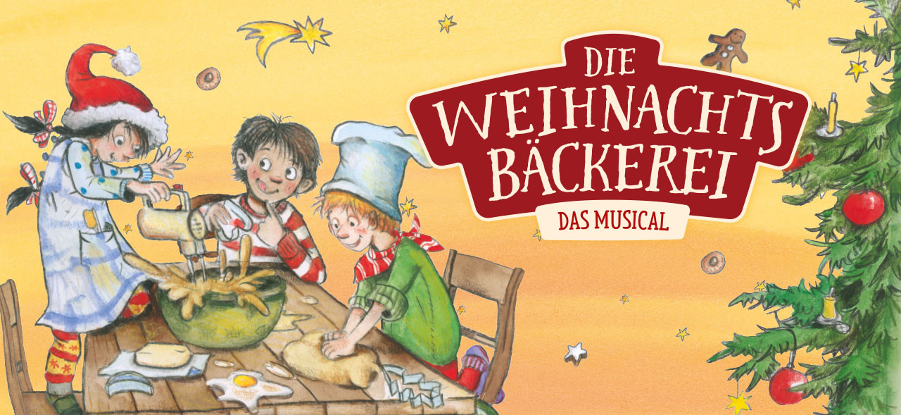 Kann man Schnee wirklich herbeiwünschen? Gibt es tatsächlich Hunde, die sprechen, singen und auch noch das Publikum dirigieren können? Kann ein Schneemann singen und tanzen? Was ist eine Bim-Bam-Bella-Tinkie-Trixie-Ich-bin-Deine-Freundin-Puppe? Ist der Weihnachtsmann manchmal eigentlich auch eine Weihnachtsfrau? Und wo ist überhaupt das Rezept für die Weihnachtskekse geblieben?Antworten auf all diese Fragen gibt das Musical "Die Weihnachtsbäckerei", in dem die drei Geschwister Jonas, Paul und Emily gemeinsam mit ihrem Hund Muffin so einige Abenteuer erleben.Als ihre Eltern wegen eines Schneetreibens nicht nach Hause kommen können, sind die drei auf sich allein gestellt, um die heimische Weihnachtsbäckerei ins Leben zu rufen, da am nächsten Morgen die Großeltern erwartet werden. Natürlich ist der Kühlschrank leer, das Rezept verschwunden und kein Geld im Haus. Daher müssen sich die Geschwister so einiges ausdenken, um an ihr Ziel zu gelangen.Werden sie es schaffen, ihre Eltern mit wunderbaren Keksen zu überraschen? Oder werden sie sich im Wald auf dem Weg zum Weihnachtsmarkt verlaufen? Weshalb ist ihnen unentwegt die Nachbarin Frau Schnitzenbacher auf den Fersen? Und wo ist Muffin schon wieder abgeblieben?Erzählt wird eine turbulente Geschichte zur Vorweihnachtszeit, eingebettet sind 20 der schönsten Winter- und Weihnachtslieder von Rolf Zuckowski - natürlich auch das bekannte Titellied.