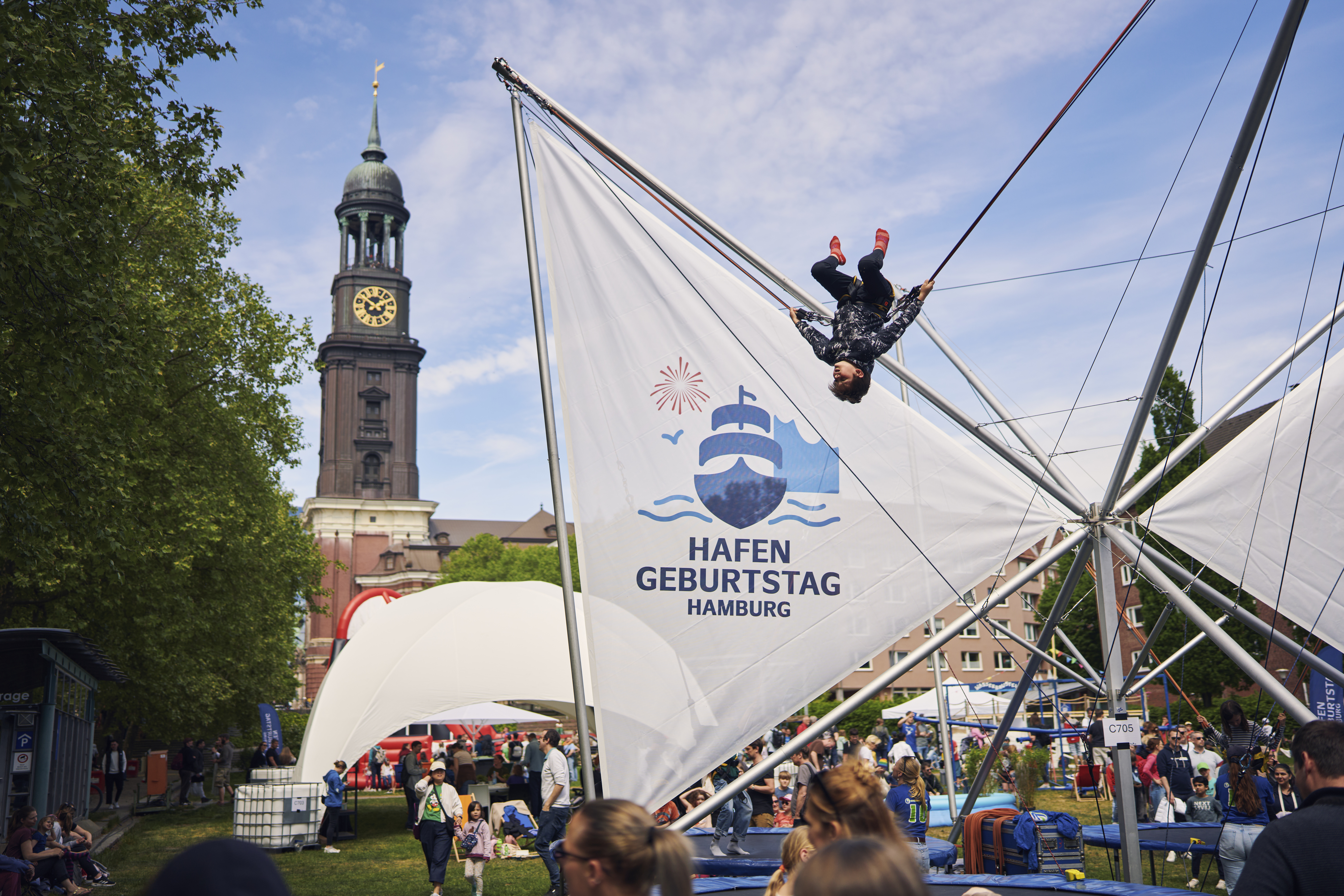 Die Michelwiese wird zur Spielwiese für kleine Entdecker: Beim Familien- und Kinderfest gehen die Lütten auf Abenteuerreise. Direkt am Fuße des Michels, geschützt und doch in unmittelbarer Nachbarschaft zum Hafentrubel, findest du spannende Stationen zwischen Meer und Hafen: Hebe ab auf dem Bungeetrampolin, klettere, tobe, baue und experimentiere. Hier leuchten Kinderaugen auf.