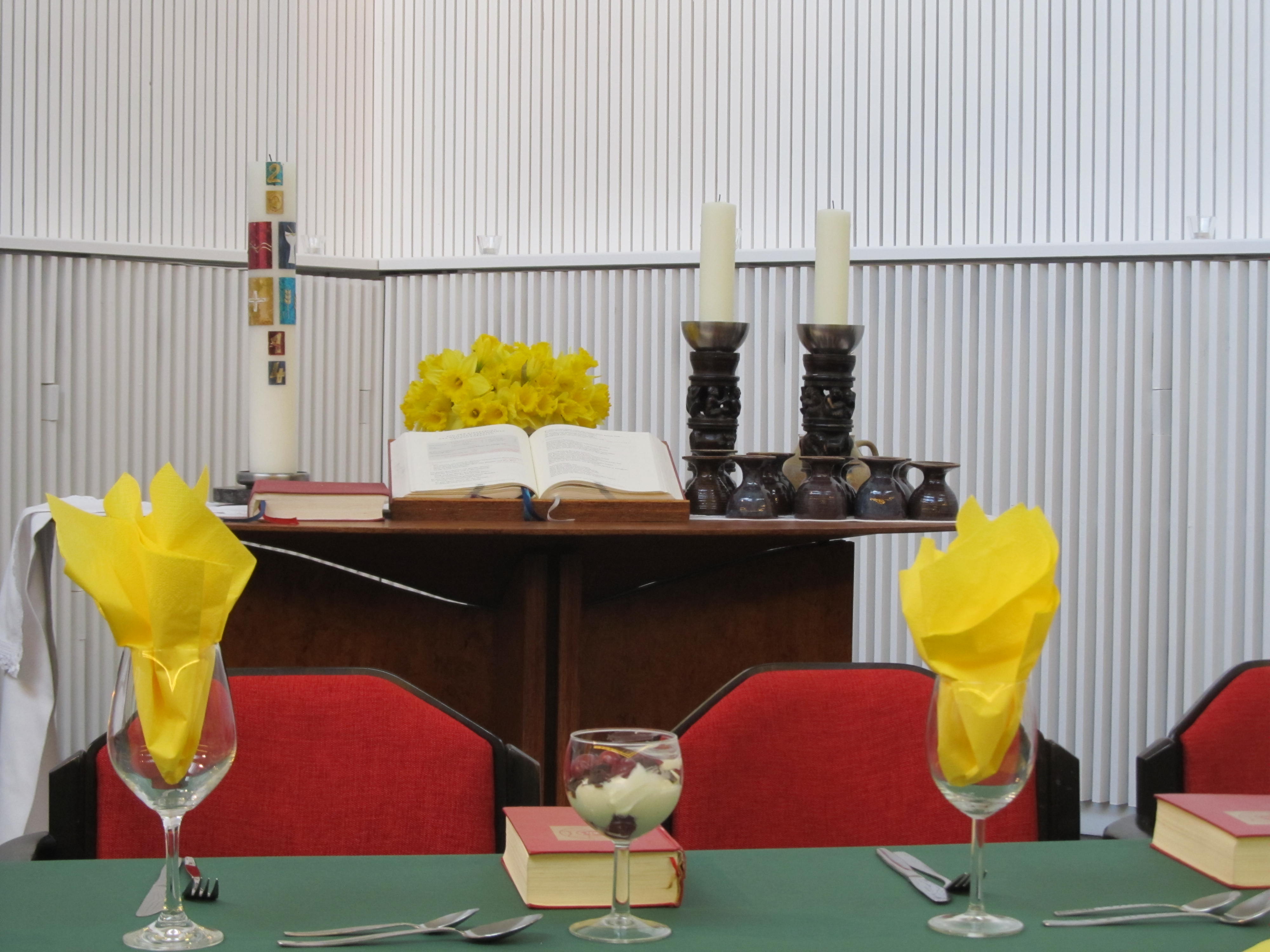 Gründonnerstag gemeinsam mit der Emmaus Gemeinde„Abendmahl anders“ -Gemeinsam an einem Tisch-in der Ev.-Luth. Maria-Magdalena-KirchePastor i. V. Dietrich Kreller, Pastor Mathias DahnkeBitte mit Anmeldung über das Kirchenbüro Tel. 040-831 50 85