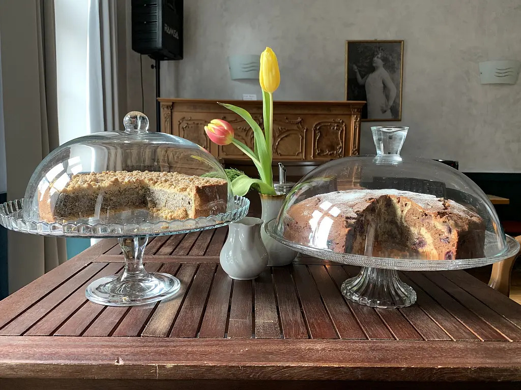 Zu selbstgebackenem Kuchen gibt es kalte und warme Getränke.