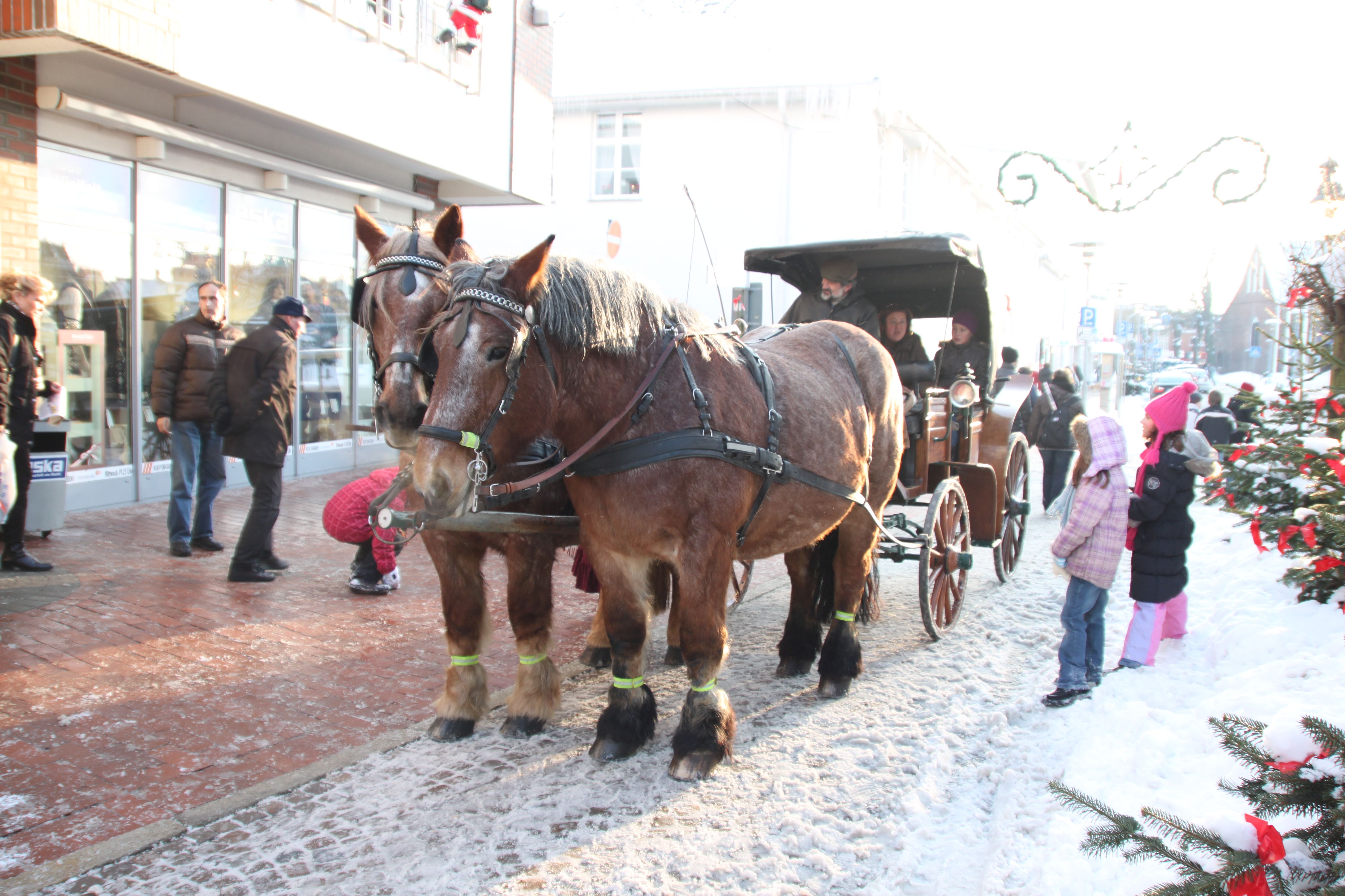 Die winterlichen Kutschfahrten finden an allen Adventssamstagen von 13.30 bis 15.30 Uhr statt. Beginn ist am eska Kaufhaus in der Kremper Straße. Die Fahrten kosten 1 Euro pro Fahrt für Kinder und 3 € pro erwachsener Person und der Erlös wird für ein soziales Projekt oder an einen Verein gespendet. Es ist keine Anmeldung notwendig.