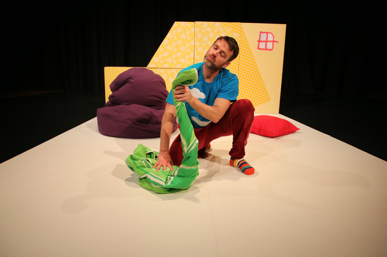 Daniel erwacht in seinem Zimmer. Was ist das? Sieht aus wie ein Kissen und eine ganz normale Bettdecke. Jetzt erwacht das Spiel. Das Kissen für den Kopf wird Essen in einem Topf? Eine Matratze wird zur Tatze? Ins Land der Fantasie fahren wir! Daniel, wir tanzen mit dir! Mein kleines großes Zimmer ist ein Solo-Tanzstück für die Allerjüngsten. Es lädt sein Publikum ein, ganz nah heran zu kommen.