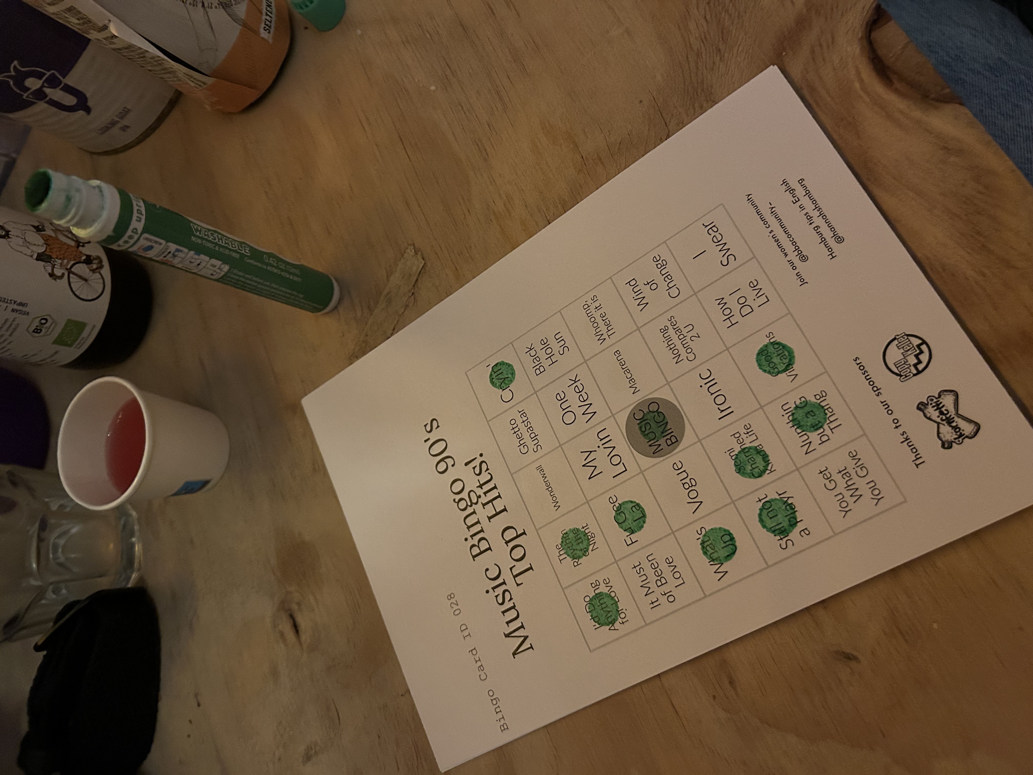 -Music Bingo ist eine Abwandlung des traditionellen Bingo, bei der die Spieler Bingo-Karten mit Songtiteln oder Interpreten erhalten. Unser DJ spielt kurze Ausschnitte (jeweils etwa 30 Sekunden), und die Spieler markieren die passenden Songs.