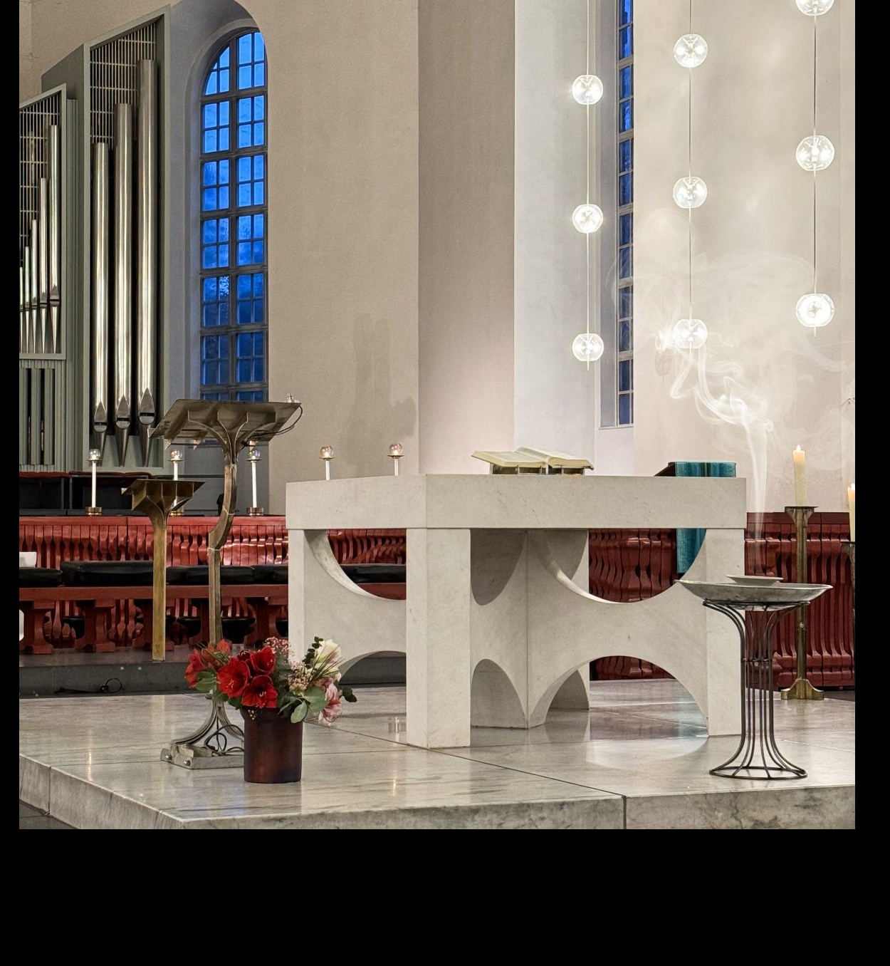 Die musikalische Vesper schließt an die jahrhundertealte Traditiondes liturgischen Abendgebetes an. Im Mittelpunkt stehender Gesang von Psalmen, eine Schriftlesung, Gebete undmeditative Orgelimprovisationen. Sie sind herzlich eingeladen,jeden 1., 3. und ggf. 5. Freitag im Monat ab 19 Uhr dabei zu sein.