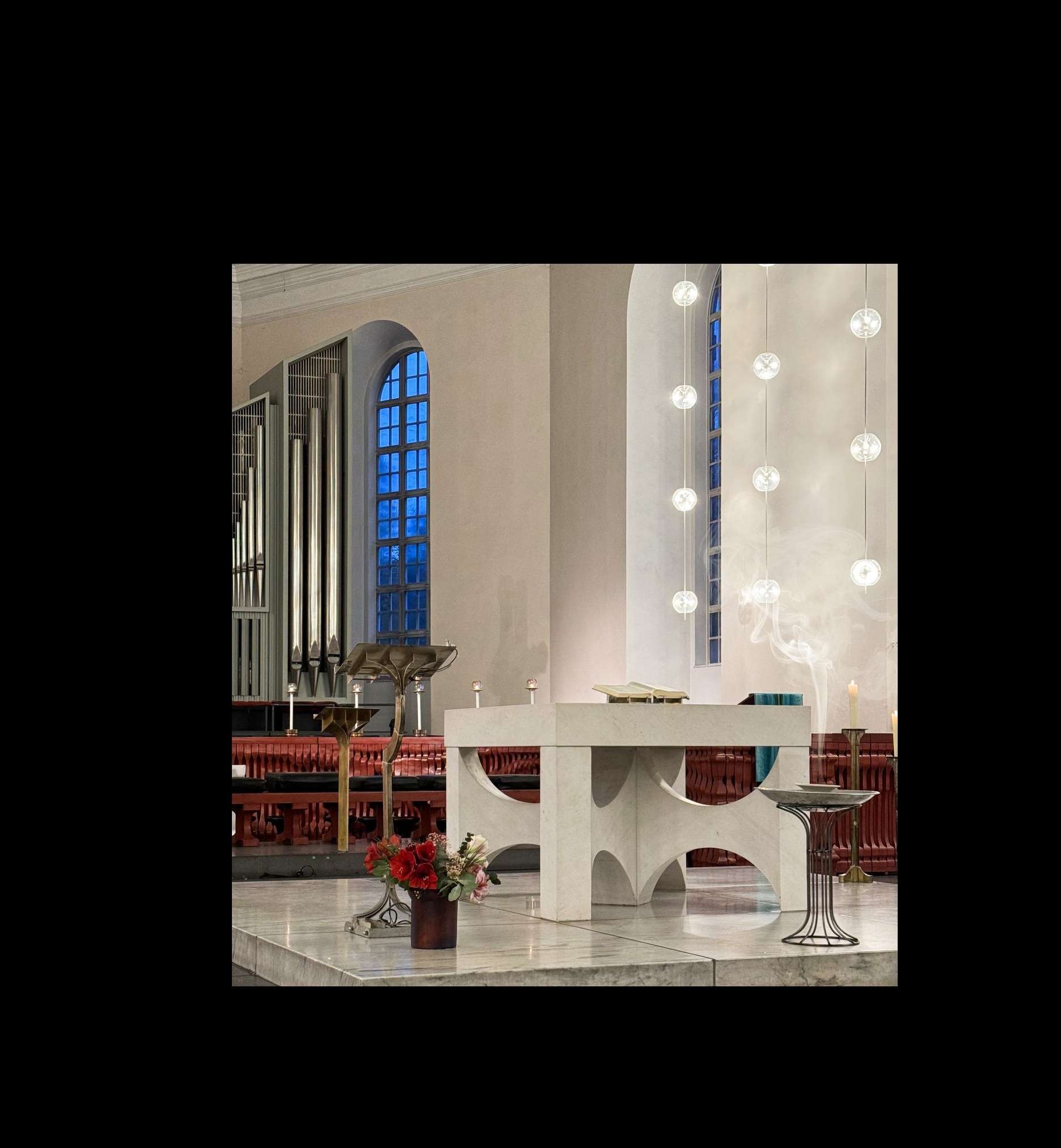 Die musikalische Vesper schließt an die jahrhundertealte Traditiondes liturgischen Abendgebetes an. Im Mittelpunkt stehender Gesang von Psalmen, eine Schriftlesung, Gebete undmeditative Orgelimprovisationen. Sie sind herzlich eingeladen,jeden 1., 3. und ggf. 5. Freitag im Monat ab 19 Uhr dabei zu sein.
