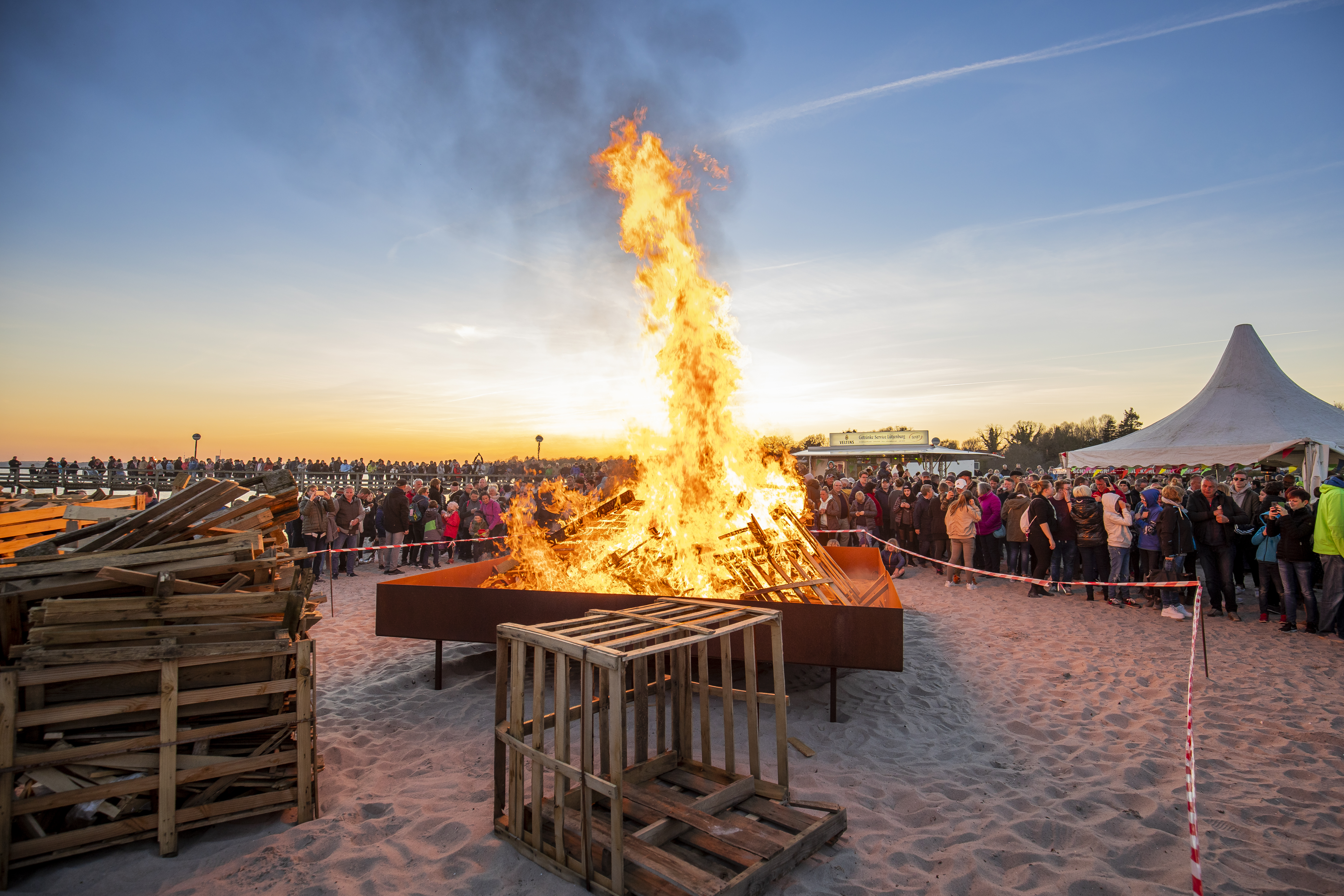 Am 19. und 20.04.2025 erwartet dich ein wärmendes Osterfeuer in der Riesenfeuerschale am Strand in Pelzerhaken. Du kannst dich an den Pagodenzelten am Strand und coolen Foodtrucks am Seebrückenvorplatz mit kulinarischen, heißen und kalten Leckereien versorgen.