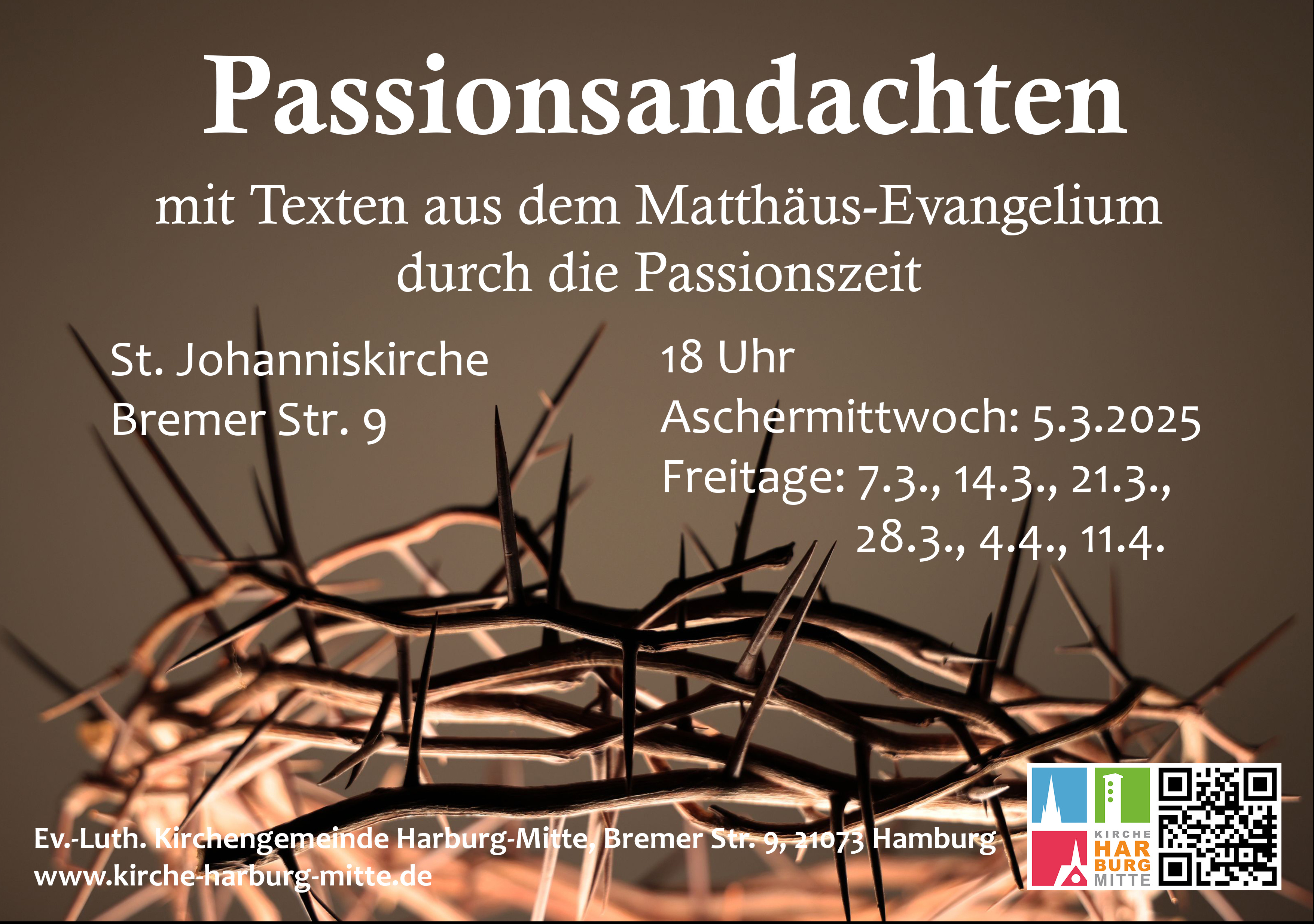 Mit dem Aschermittwoch (5.3.) beginnen die sieben Wochen der Passionszeit, durch die sich der Bericht des Evangelisten Matthäus wie ein roter Faden durch unsere Andachten zieht. Welche Bilder führt er uns vor Augen, welche Symbole verbinden sich mit unserem Leben? Alte und neue Passionslieder suchen einen sinnlichen Zugang zum Leiden Jesu.
