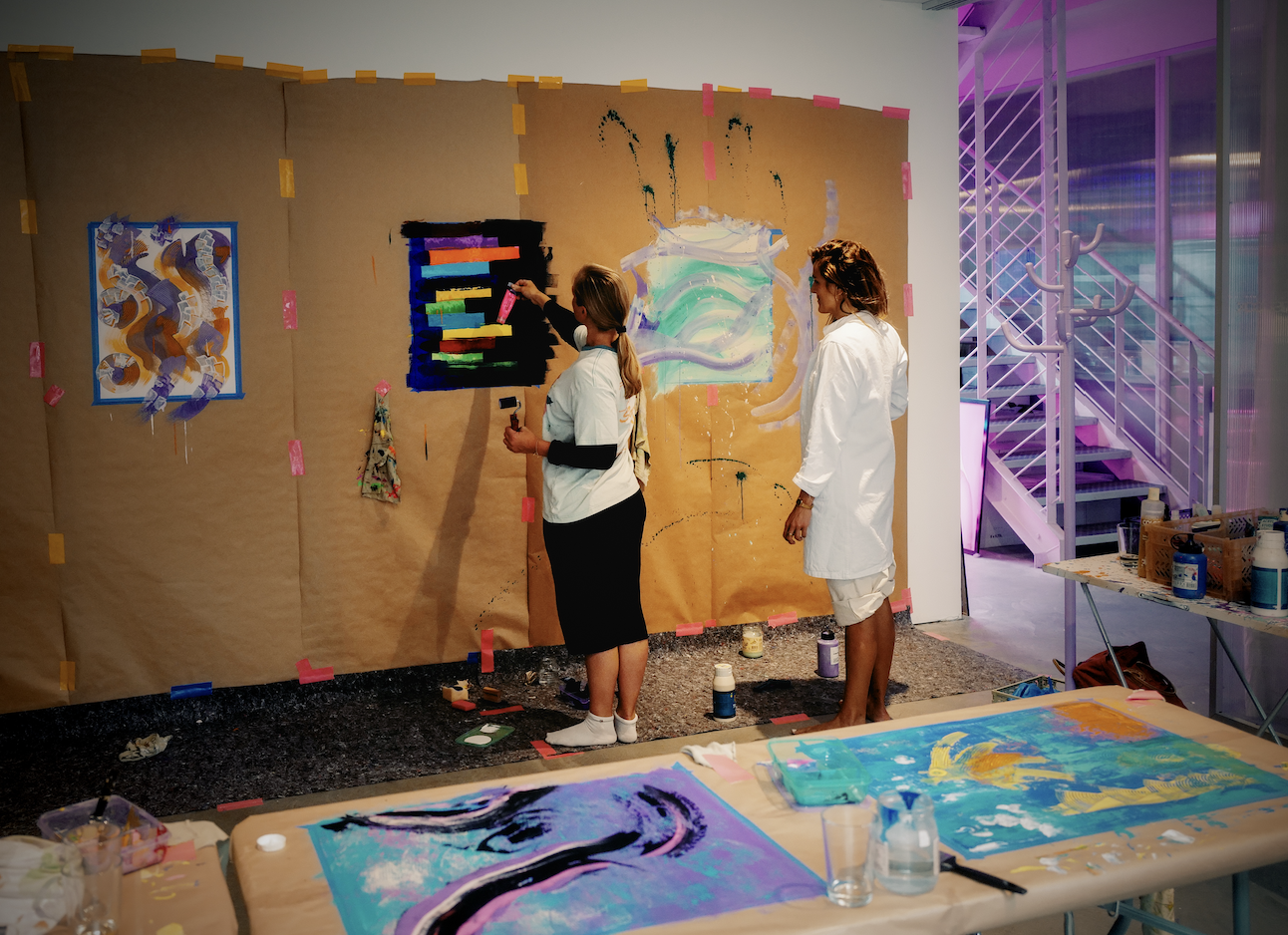 Wir malen auf großes Format aus Canvas Papier. Entscheide dich, ob du am Tisch oder an der Wand arbeiten willst. Über den Abend hinweg probieren wir unterschiedliche Techniken aus, die du kombinieren kannst oder auch übereinander anwenden kannst, da Acryl sehr schnell trocknet. Du wirst ein Werk mit dünnem weißem Rahmen mit nach Hause nehmen als Andenken an deine Kreativität.