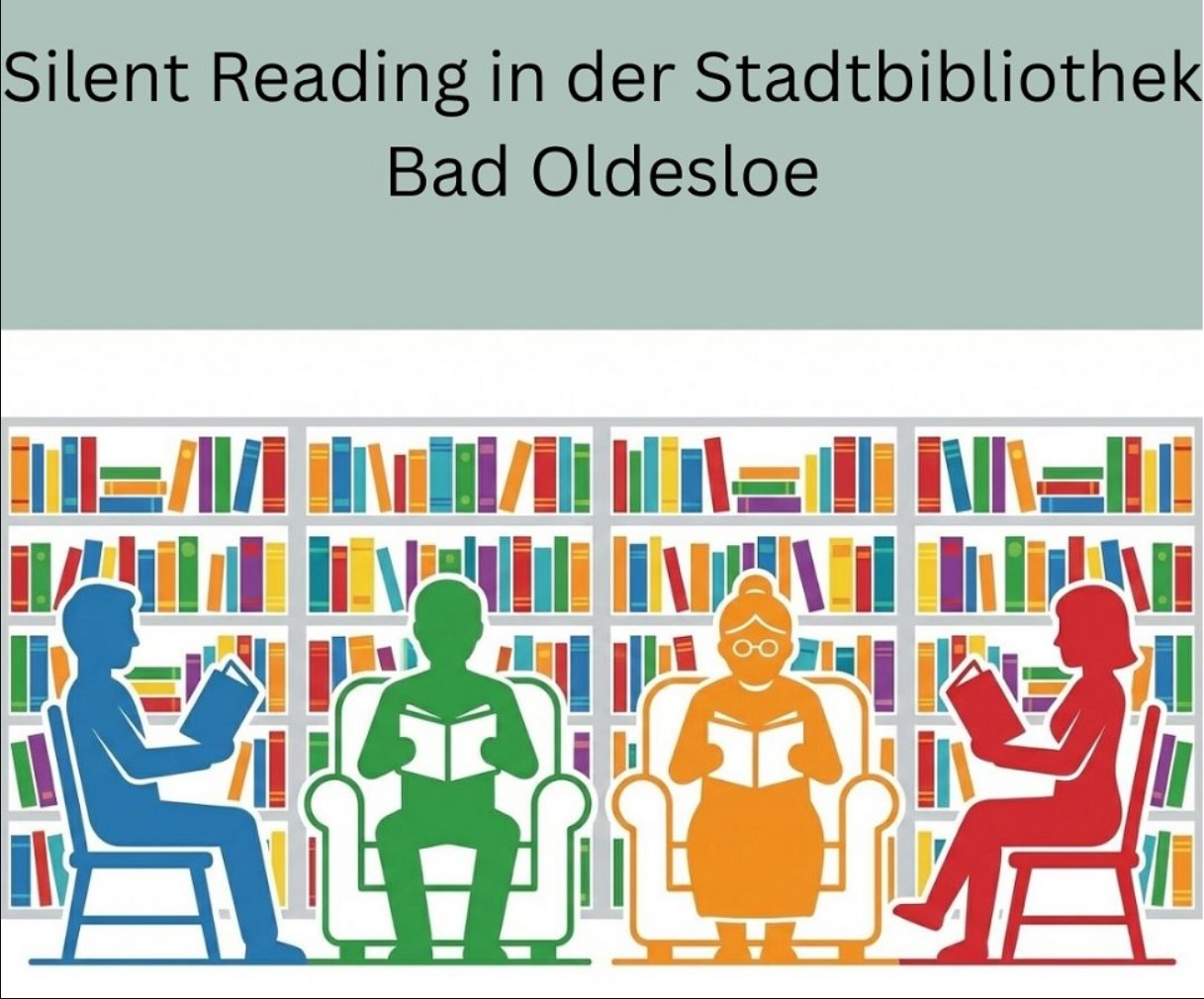 Der Freundeskreis der Stadtbibliothek Bad Oldesloe lädt zum Silent-Reading in die Stadtbibliothek Bad Oldesloe ein. Bei Silent Reading treffen sich Menschen, um gemeinsam, aber jeder für sich in Ruhe zu lesen, ohne Gespräche oder Ablenkungen wie beispielsweise Handys. Jede Person bringt ihr eigenes Buch mit und konzentriert sich voll auf die Lektüre. Lesen in ruhiger, entspannter Atmosphäre! Danach besteht die Möglichkeit, über die mitgebrachten Bücher oder auch über das Lesen im Allgemeinen zu plaudern. Büchertipps werden bestimmt ausgetauscht! Für Knabbereien und Getränke ist gesorgt. Die Veranstaltung findet im Erdgeschoss des Westflügels statt. Die Stadtbibliothek ist nur eingeschränkt barrierefrei.