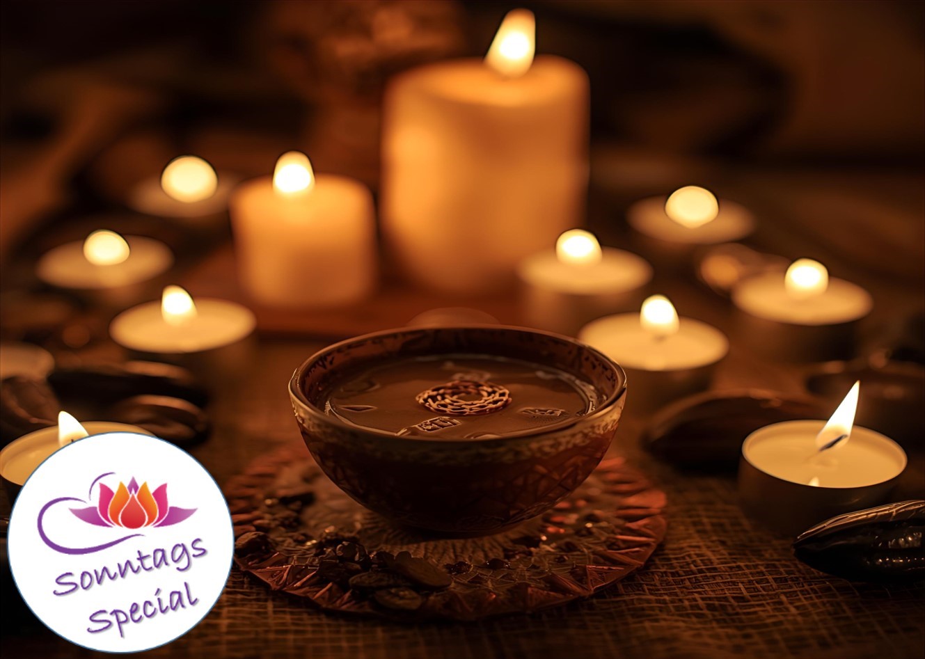 Beim "SONNTAGS SPECIAL" - Große Kakaozeremonie - begibst Du Dich auf eine spannende, kraftvolle und bittersüße Reise in die Welt von Mama Cacao ein - so wird der unbehandelte Rohkakao genannt!