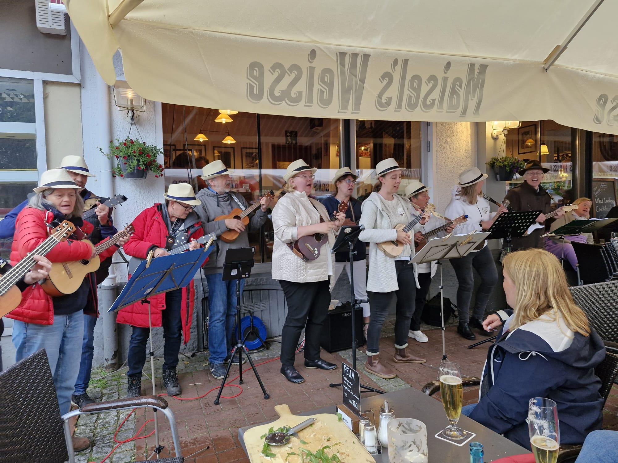 10 Uhr: Gemeinsamer Auftakt der Frühaufsteher im Zentrum der Fußgängerzone Kirchstraße / Kurhausstraße (VR-Bank).10 bis 13 Uhr: Ukulele-Musik in der Fußgängerzone.15 Uhr: Offenes Singen zur Ukulele im Innenhof oder in der Aula der Gemeinschaftsschule am Seminarweg, Seminarweg 5.Lieder zum Download gibt es auf Anfrage, Kontakt s.u.ab 19 Uhr: Ukulele-Live-Musik in Gaststätten wie Cafe Ludwigs und Central-Gasthof. Anschl. ca. 22 bis 24 Uhr: Session am Cafe Ludwigs, wo nach Herzenslust miteinander gespielt und gesungen wird.