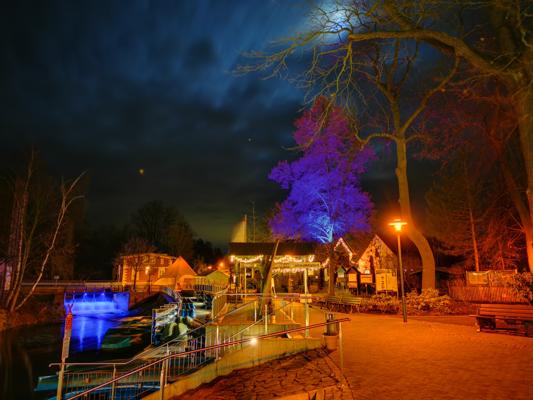 Genießen Sie die abendliche, ruhige Stimmung und träumen Sie sich in die Nacht. Hören Sie, wie das Eis am Fließrand knirscht, während Sie mit einem Becher Glühwein den Spreewald bei Nacht genießen.