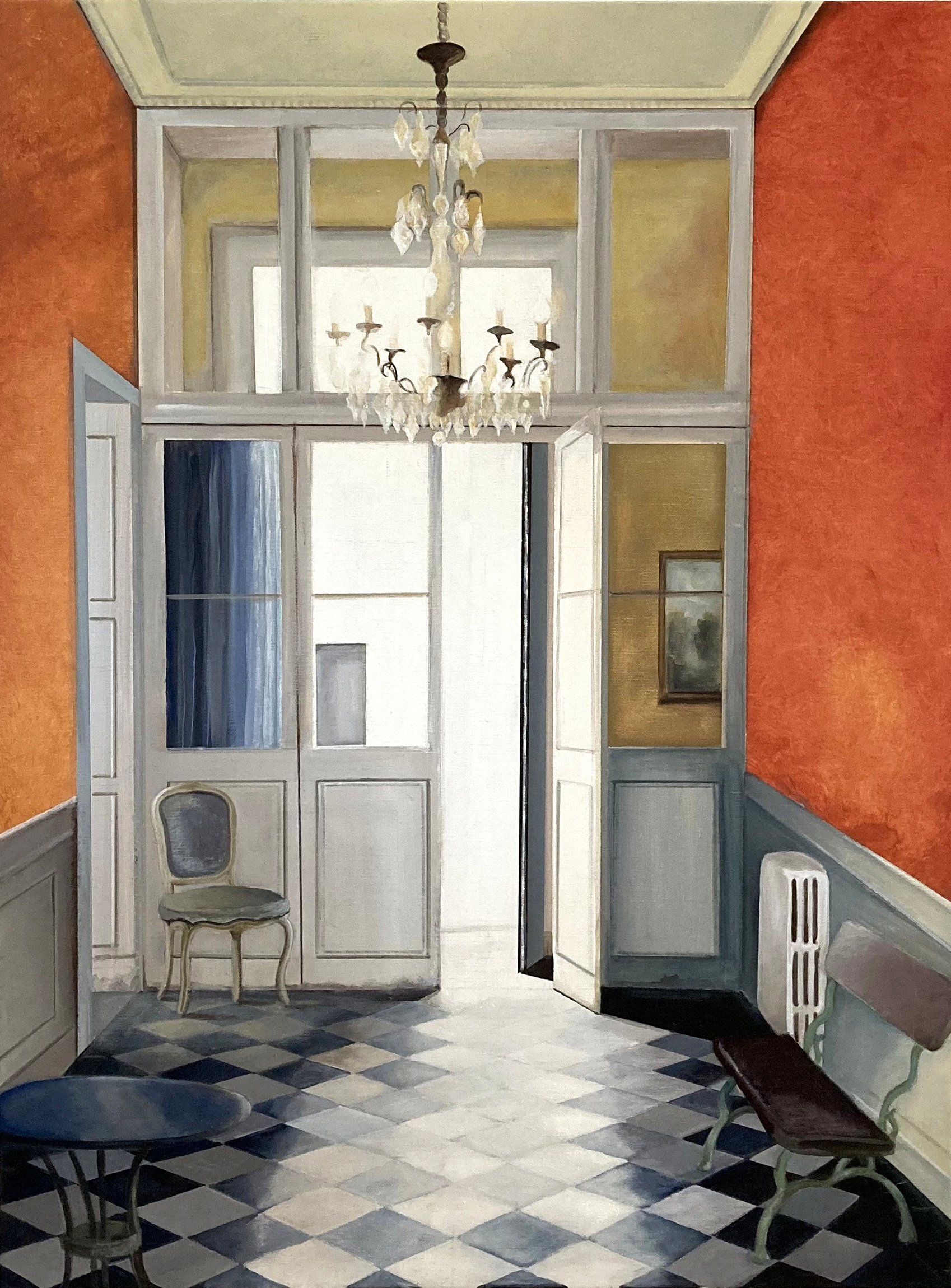 Im Mittelpunkt steht das Interieur - stille, leere, menschenleere Räume, die dennoch von einer spürbaren Präsenz erfüllt sind. Mit sicherem Blick für Atmosphäre und Komposition erschafft Angelika Oedingen Orte, die zugleich vertraut und fremd wirken. Ihre Gemälde laden dazu ein, genauer hinzusehen und zu hinterfragen: Was sehen wir wirklich und was glauben wir zu sehen?