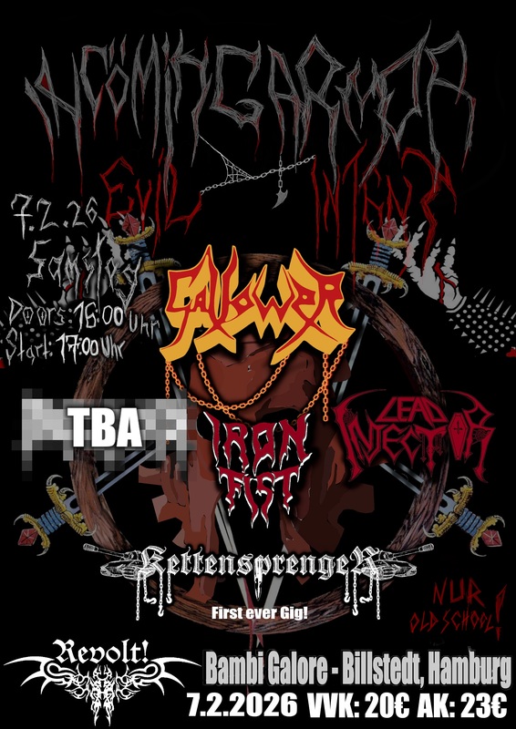 Live:Gallower - Black/Thrash Metalhttps://www.facebook.com/GallowerofficialIron Fist - Death/Thrash Metalhttps://www.instagram.com/iron_fist_band/Lead Injector - Black/Speed Metalhttps://www.facebook.com/profile.php?id=61566910634869Kettensprenger - Black/Death/Thrash Metalhttps://www.instagram.com/kettensprenger.band/Berzerk - Primitive Metal Kombiticket Fr+Sa 35,- https://kulturpalast-hamburg.leoticket.de/fs/d4fc221c-ff28-474d-a9a6-24400ed10e1b?fbclid=IwY2xjawMxCotleHRuA2FlbQIxMAABHtj6w0c6d1yFMEeoz9NtKLo2VotvCwspDErdUyM4aR3ddDCqwVIbgAbvIXsH_aem_kf2Dp2CUNn_Lnal7XWoyLA