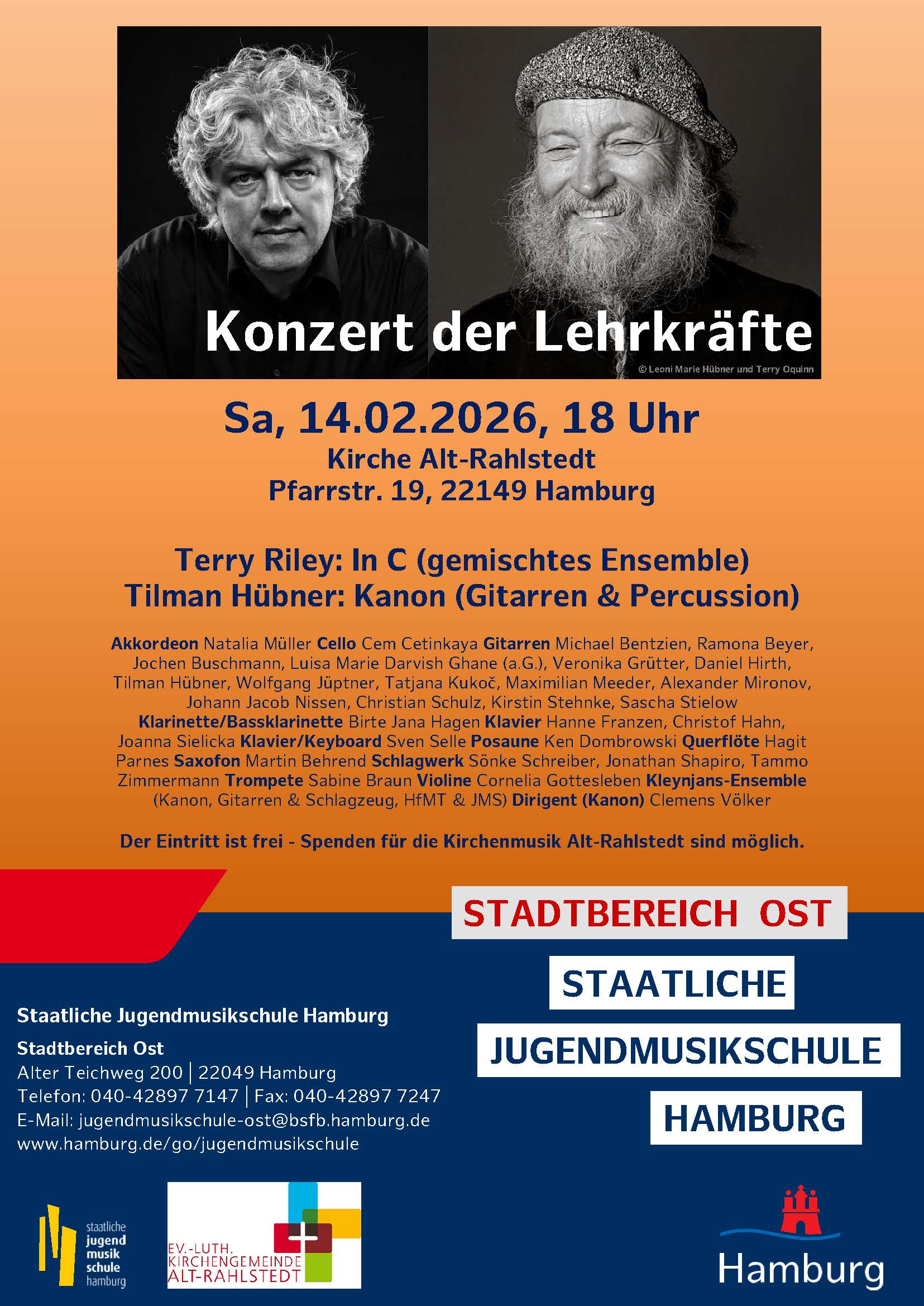 Tilman Hübner verabschiedet sich mit diesem Konzert aus seinem Dienst als Leiter des Stadtbereichs Ost der Staatlichen Jugendmusikschule Hamburg und freut sich als Mensch und Musiker darauf, nicht zuletzt in Rahlstedt weiterhin aktiv zu bleiben.