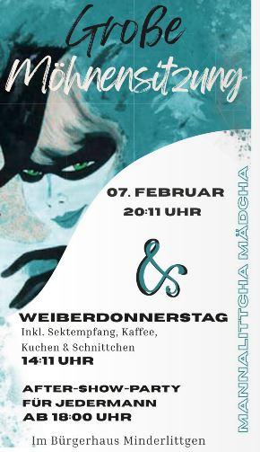 Die "Mannalittcha Mädcha" laden am 07. Februar 2026 zur Großen Möhnensitzung und am 12. Februar "Weiberdonnerstag"