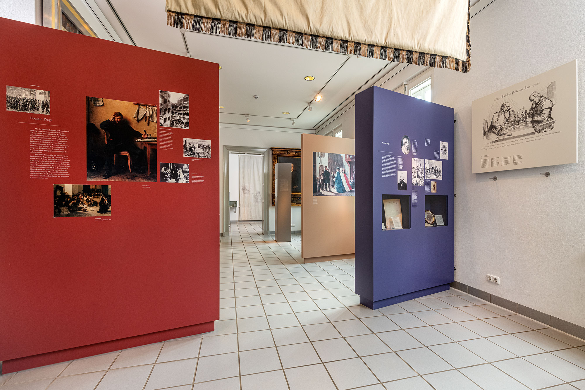 Zu sehen sind unter anderem Bismarcks Pass für die Reise nach St. Petersburg im Jahr 1859, die goldene Feder, mit der er 1871 den Friedensvertrag mit Frankreich unterzeichnete, Zeugnisse der deutschen Kolonialpolitik und Nippes, der den Bismarck-Mythos veranschaulicht.