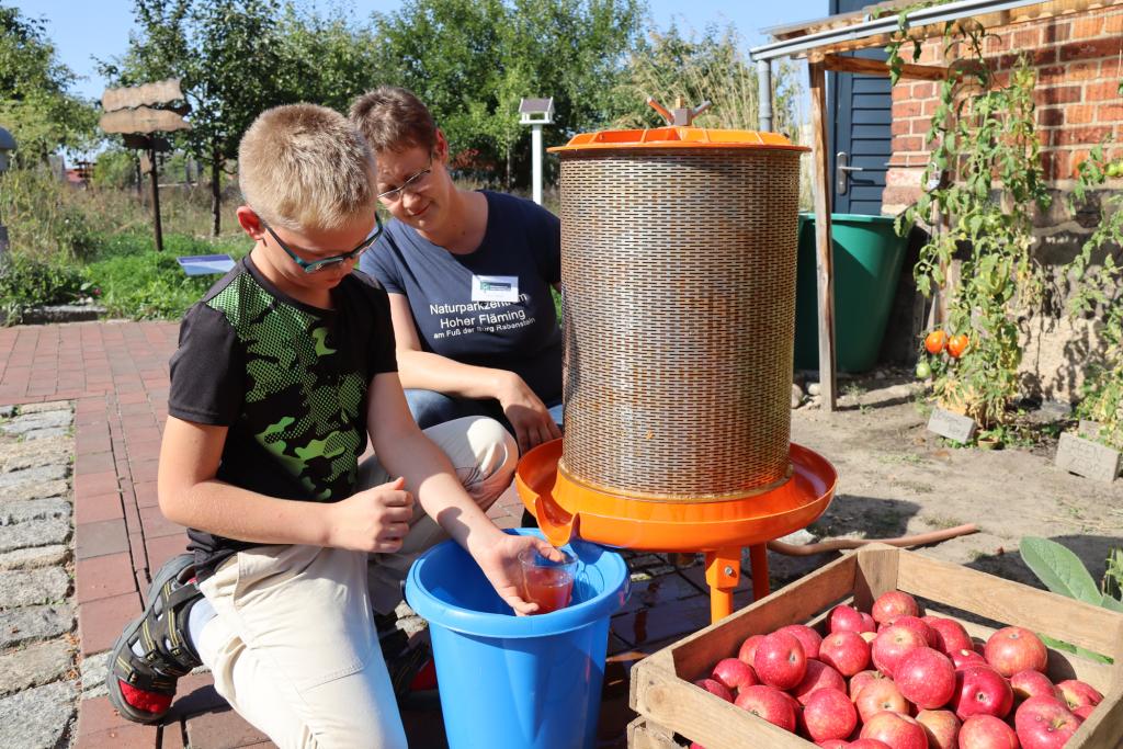 - Gemeinsam wird die Streuobstwiese am Naturparkzentrum erkundet und frisch gepresster Apfelsaft hergestellt!