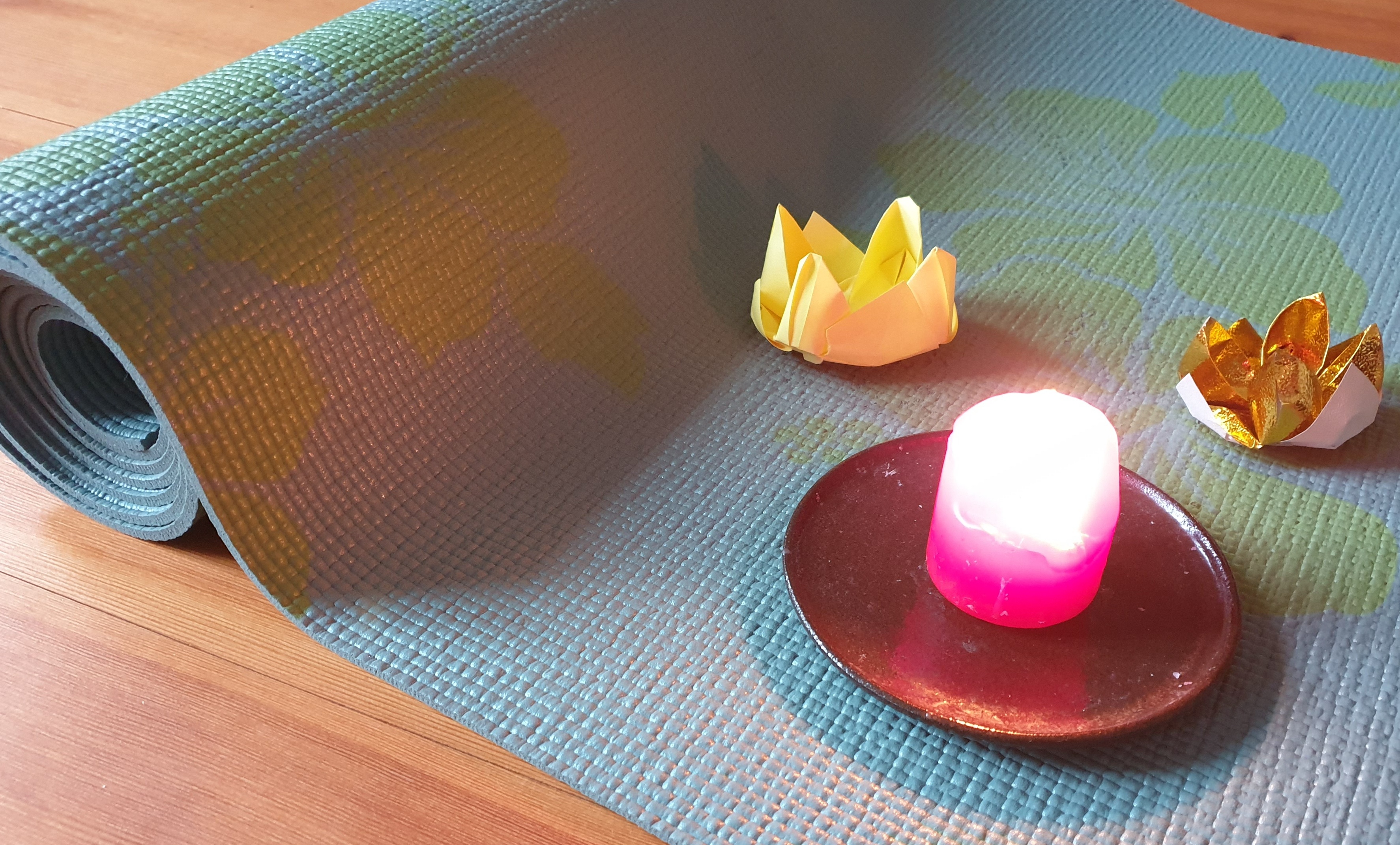 - Zum Thema „Licht“ gibt es ein Mantra, eine Kerzenübung, Klänge, Asanas und Entspannung.